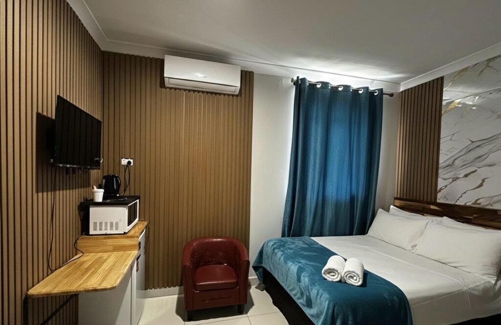 Shower, Air Conditioning, Refrigerator, Desk, DVD Player, Toilet, Microwave, Heating, Flat-screen TV, Private entrance, Electric kettle, Towels, Linen, Outdoor furniture, Outdoor Smoking Area, Soft Drinks (subject to payment).